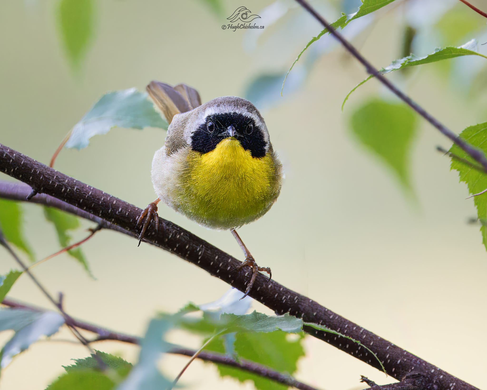 This little bandit is a Common Yellowthroat, one of many warblers that return to Nova Scotia every year to breed. He paused during his insect hunting to check me out.