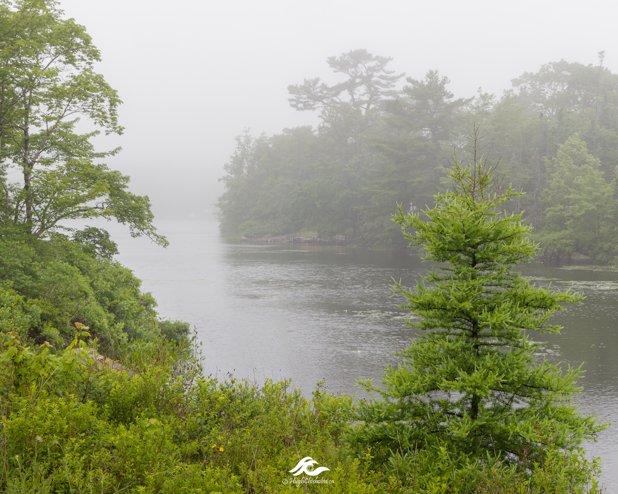 I love a foggy day! It helps add depth to an image by fading out the background. It also adds a bit of mystery by hiding what’s in the distance. This photo was taken from the rail trail at Five Island Lake in Hubley.