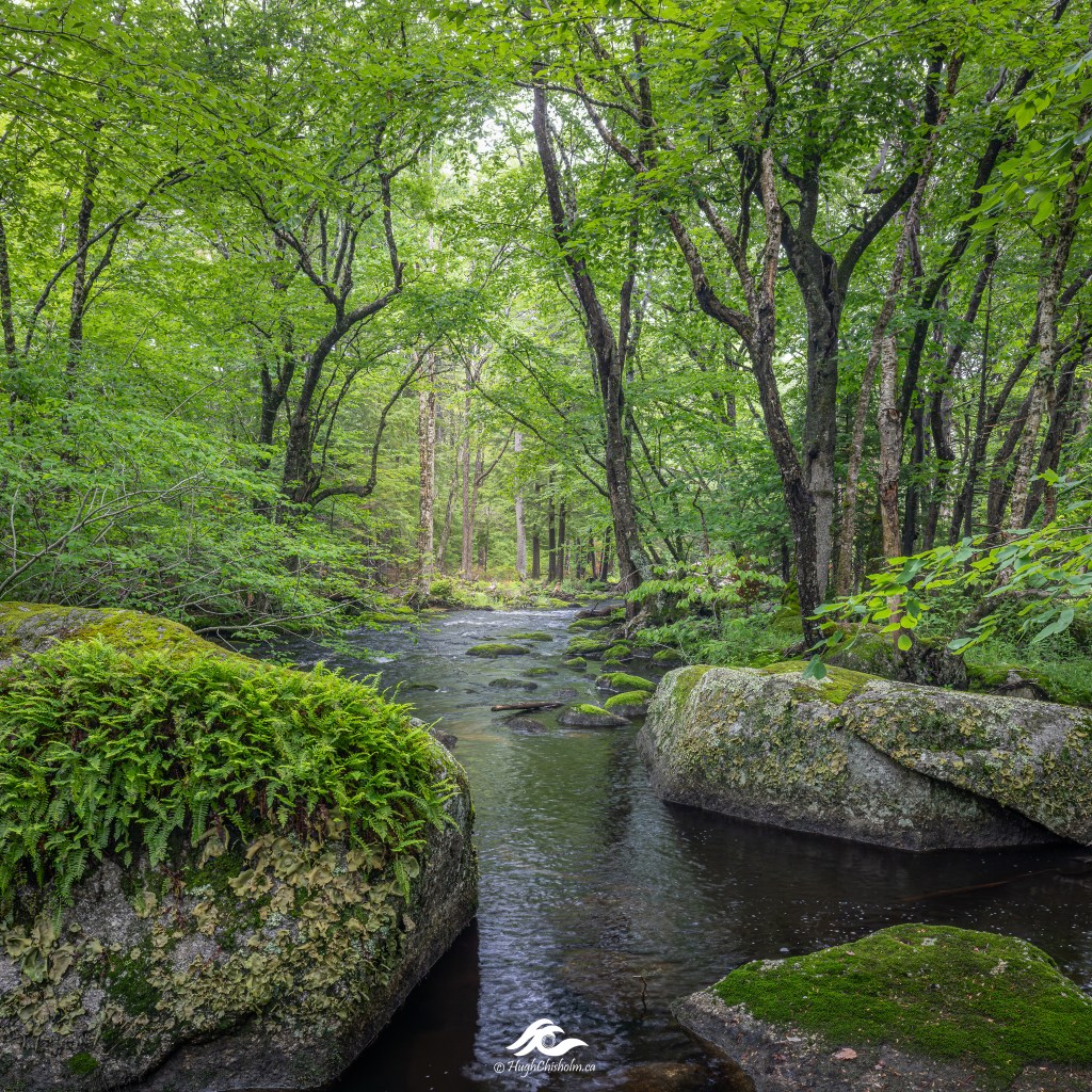 There’s a gorgeous brook that runs alongside the rail trail in the Fox Hollow neighbourhood in Upper Tantallon. I re-visit the area multiple times a year and it never disappoints! The next 3 images were all captured one foggy morning in July.