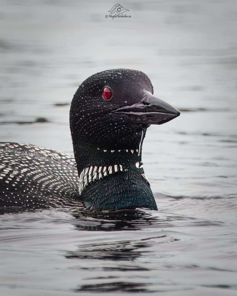 We live on a lake so we occasionally see loons fishing here during the summer. They mostly keep their distance but this fellow swam close enough for me to capture a great portrait shot just as he lifted his head out of the water.