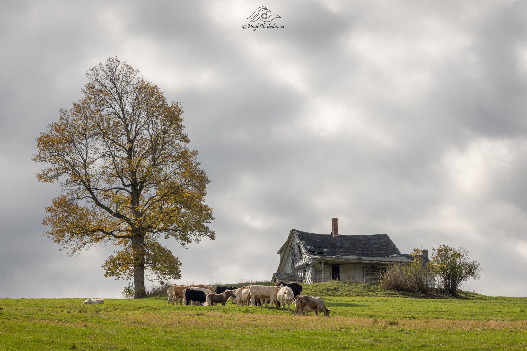 A dilapidated old farmhouse in Baker’s Settlement, Lunenburg County. An amazing tree decked out in fall colours and a small herd of cows make this photo one of my all time favourites!