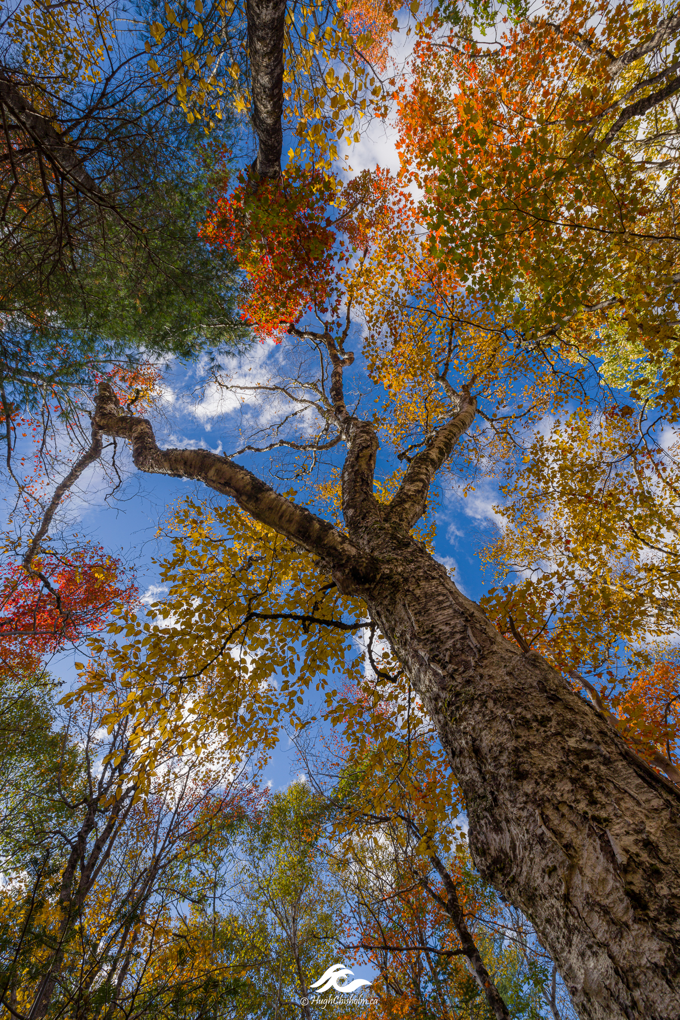 A stately old birch tree framed by beautiful fall colours. Located in Jerry Lawrence Provincial Park, Upper Tantallon.