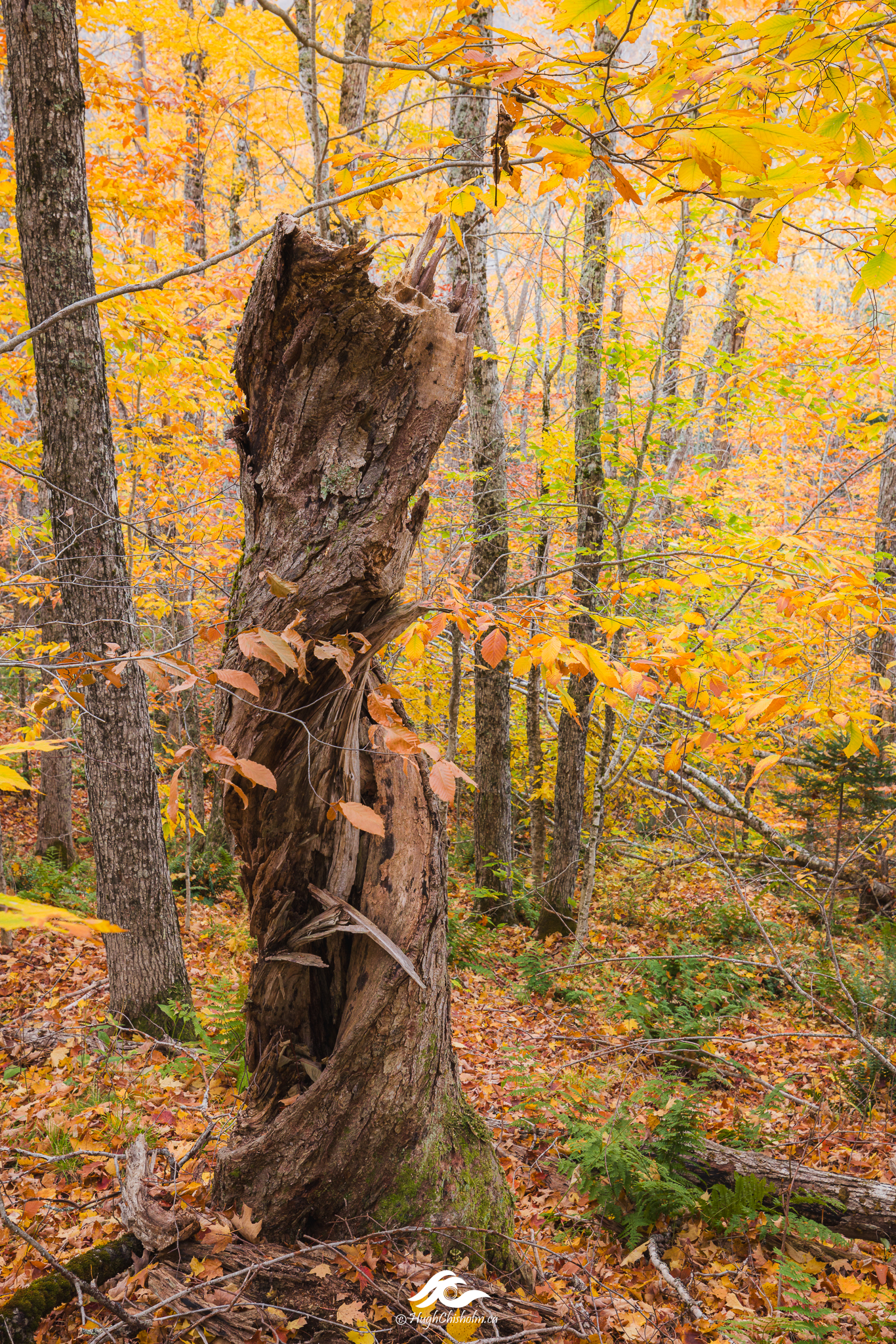 I spotted this twisted tree stump as I was strolling along a trail in the Wentworth Valley with my buddy Kevin. It reminds me of a dancer spinning across the forest floor. The pretty yellow leaves make a great backdrop for the brown wood.