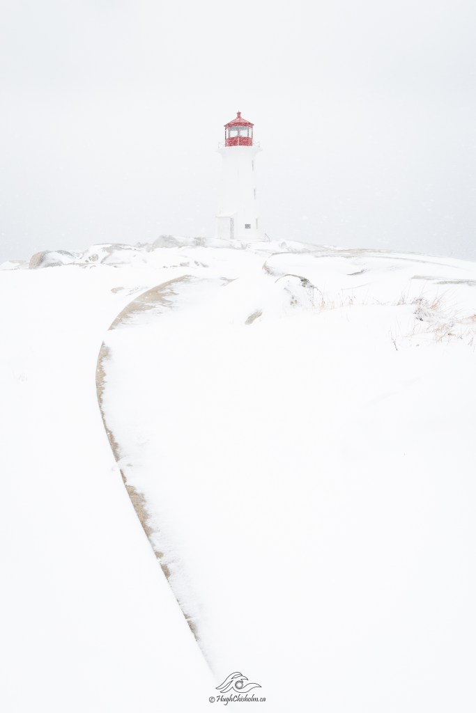 I really like how the edge of the sidewalk creates a curve that leads your eye right up to the famous Peggy’s Cove lighthouse. I shot this in the middle of a howling snowstorm. My lens kept getting covered with snow so I had to turn my back on the scene, get everything ready and then turn around and quickly compose and take the shot. I’m glad it worked out as well as it did!