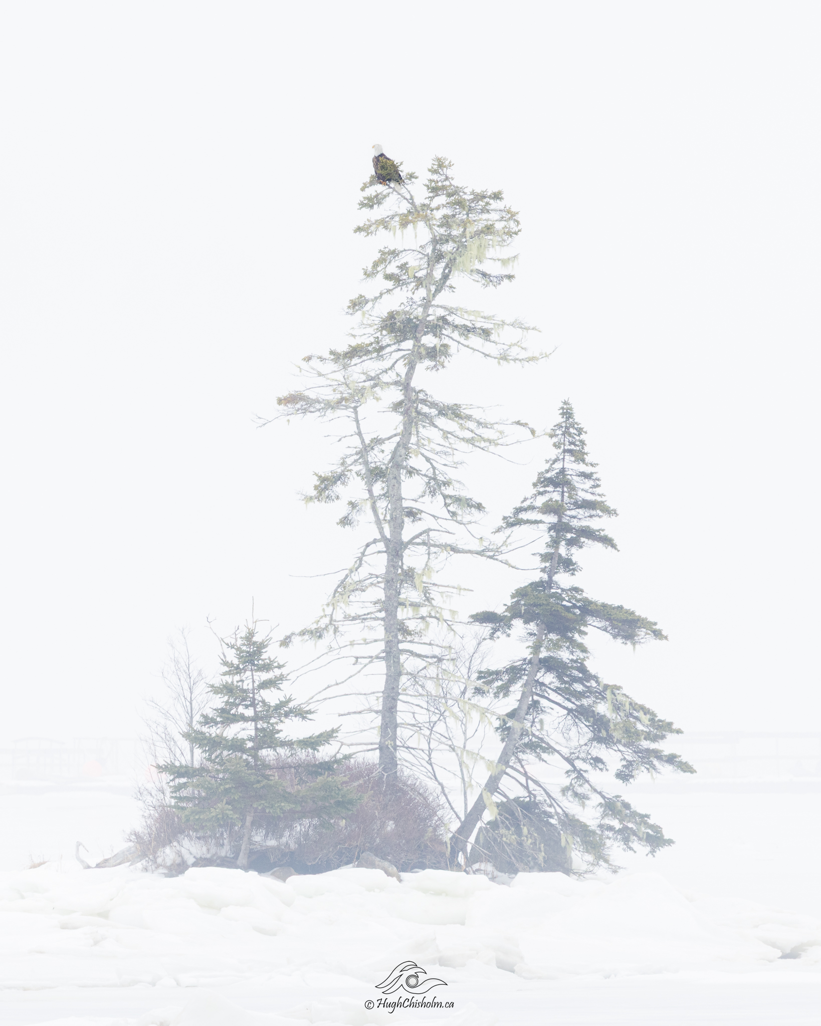 . I took this photo with a telephoto lens as I wanted to capture the tiny isolated island surrounded by fog and ice. I didn’t know that there was a bald eagle perched on top until I viewed it on my computer – what a pleasant surprise! It’s like the cherry on top of the sundae