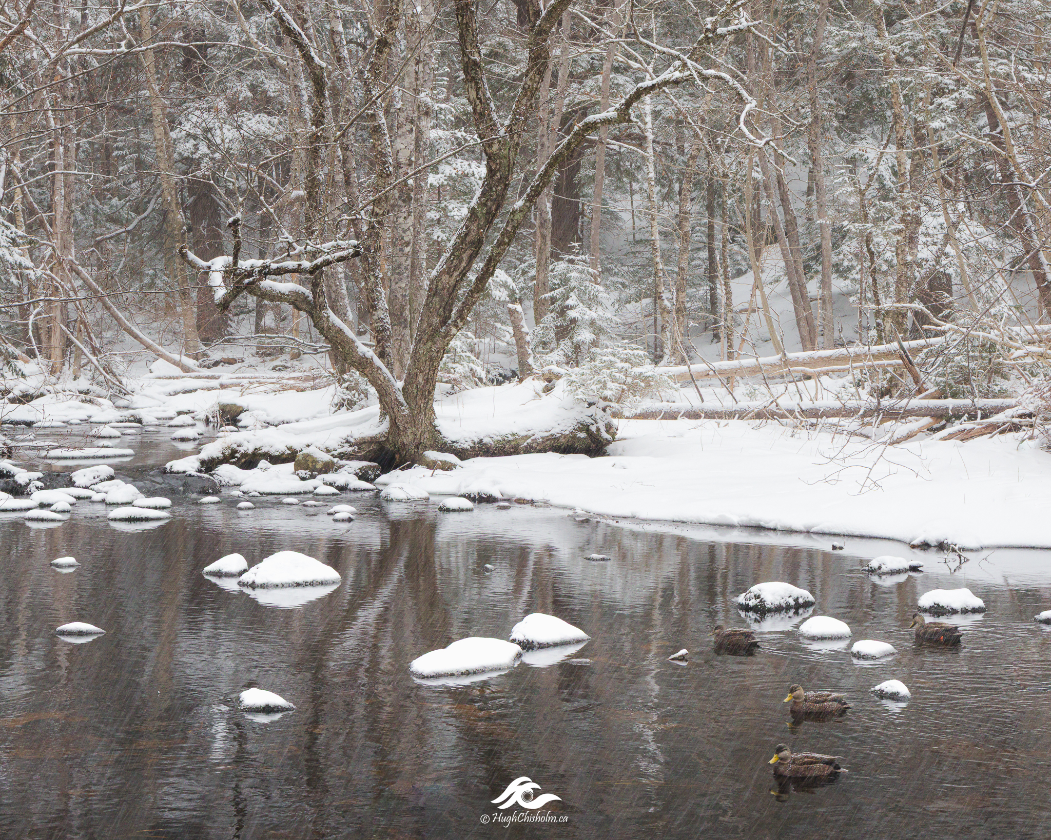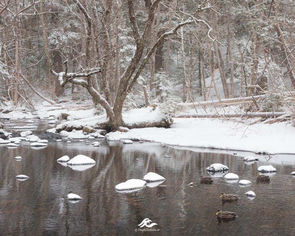We still had a bit of snow on the ground in early March so I headed to one of my favourite brooks to shoot some woodland images. I didn’t realize that there were four ducks photobombing my shot until I returned home and loaded the images onto my computer. So much for being an alert nature photographer!