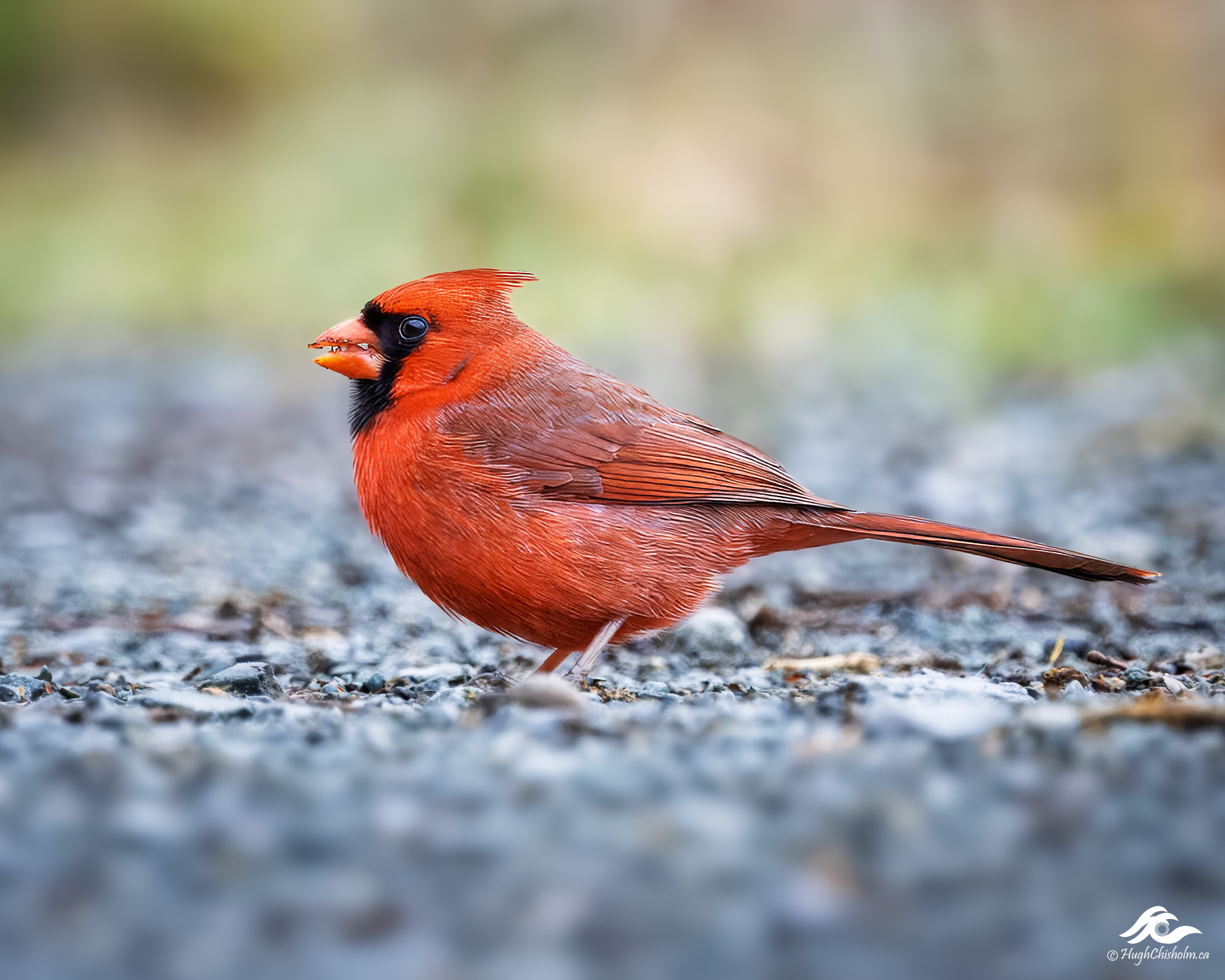 Cardinals are difficult birds to photograph because they usually hang out among brambles or at the tops of tall trees. I got lucky when I stumbled upon this male picking through the gravel on the path as I was wandering along the trail looking for something to shoot. I got my knees dirty when I took this photo. There’s a saying among nature photographers – “Don’t wear your good clothes when you go out shooting.”
