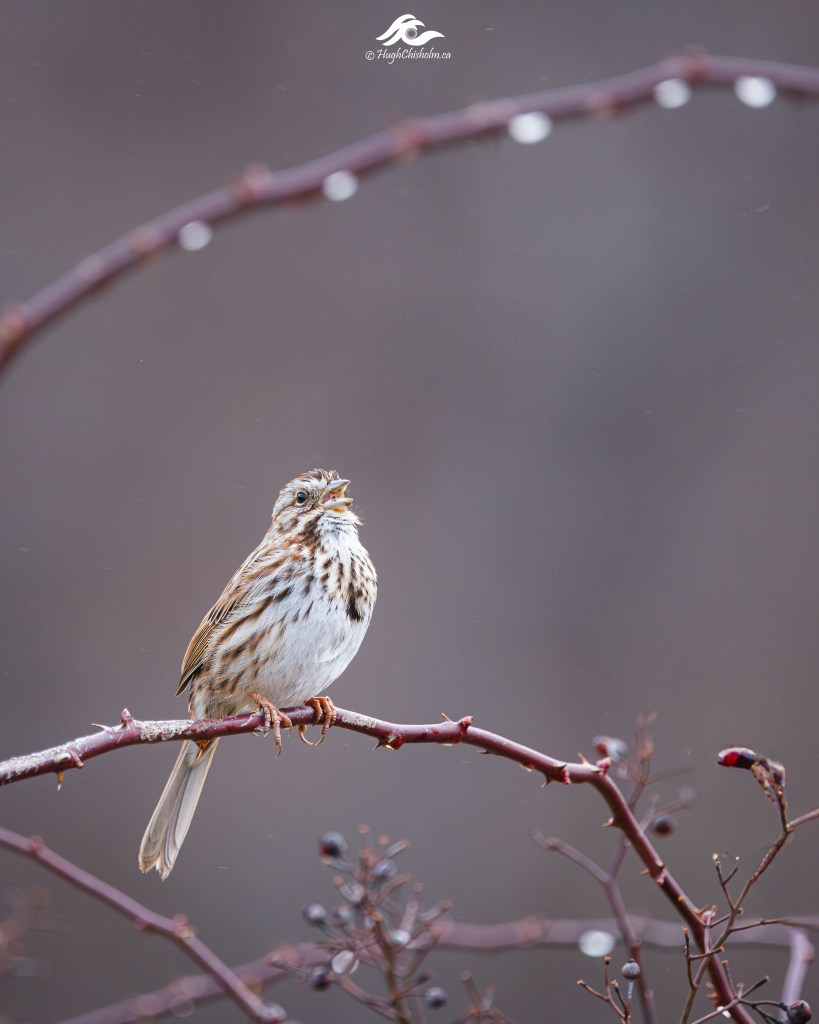 My friend Kevin and I drove to Miner’s Marsh in Kentville in late March in the hopes of capturing some images of the birds as they returned from their winter vacation. This song sparrow was belting out the song of his people as we wandered along the trail.