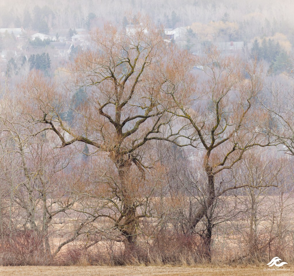 I captured this scene as I was driving through the Annapolis Valley with a couple of photography buddies. We were intrigued by the contrast between the dark tones of the trunk against the brighter orange colours of the branches. There was a slight mist in the air which gave the background a nice faded appearance.