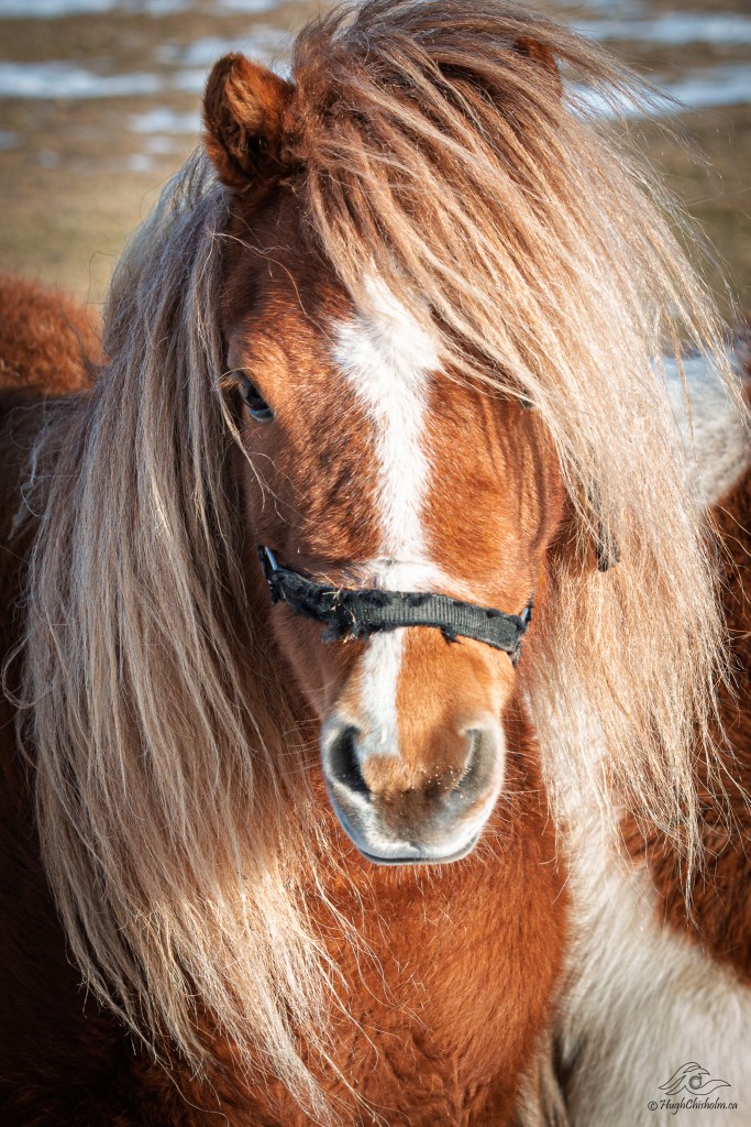 From my archives – we were driving along some back roads a few years ago when we came upon a paddock with a small herd of miniature ponies. This one captured my attention as she reminded me of a cover model. I love her hair style!