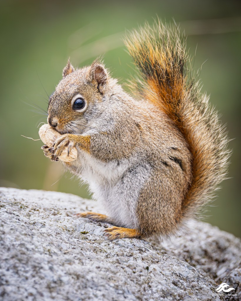A red squirrel carefully hangs on to his peanut as I grab a pic from my back door step. He looks like he expects me to grab the peanut that I just gave him. I guess you can’t trust photographers.