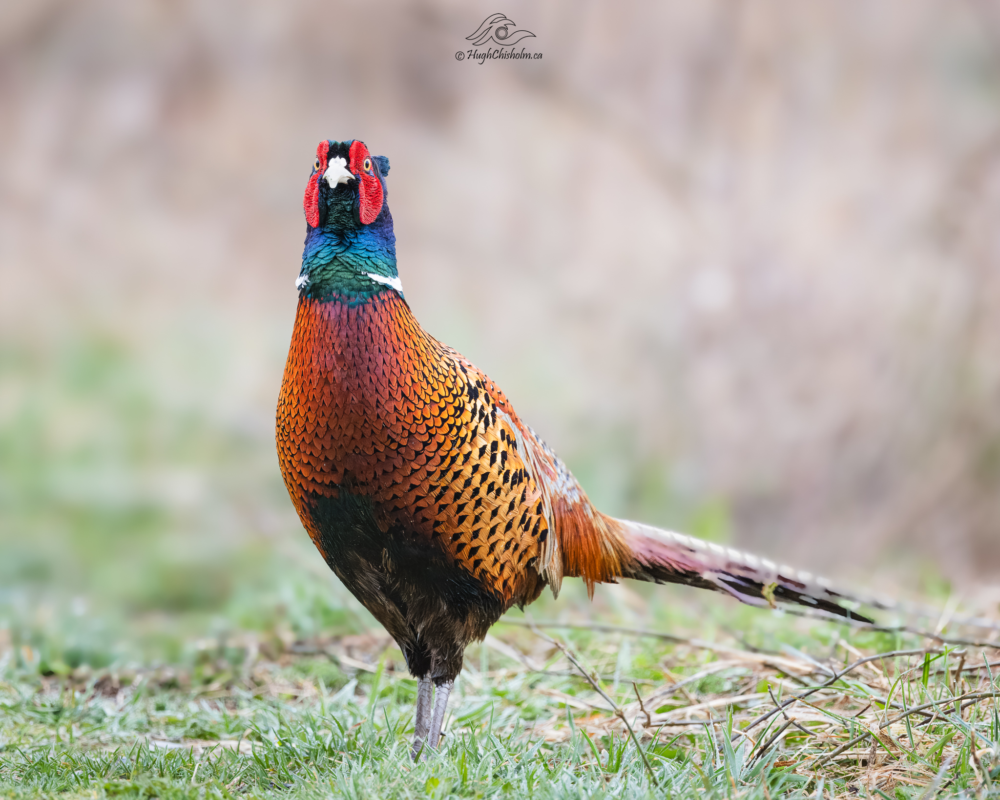 I was quietly sitting on the ground waiting to shoot redwings blackbirds when this ring-necked pheasant came strutting along the path toward me. He was quite the specimen and he knew it! He eventually lost interest in me and wandered off into the tall grass.
