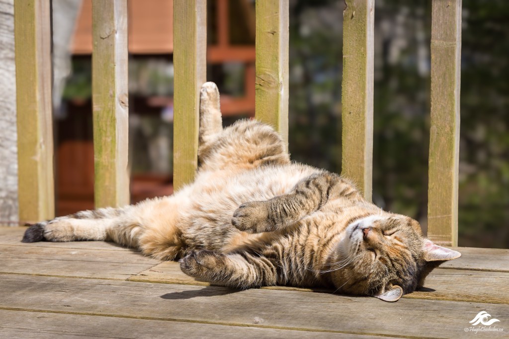 Queen Thelma demonstrates how to enjoy the sunshine in spring. It’s hard to believe that we had snow on the ground just a few weeks before I took this photo!
