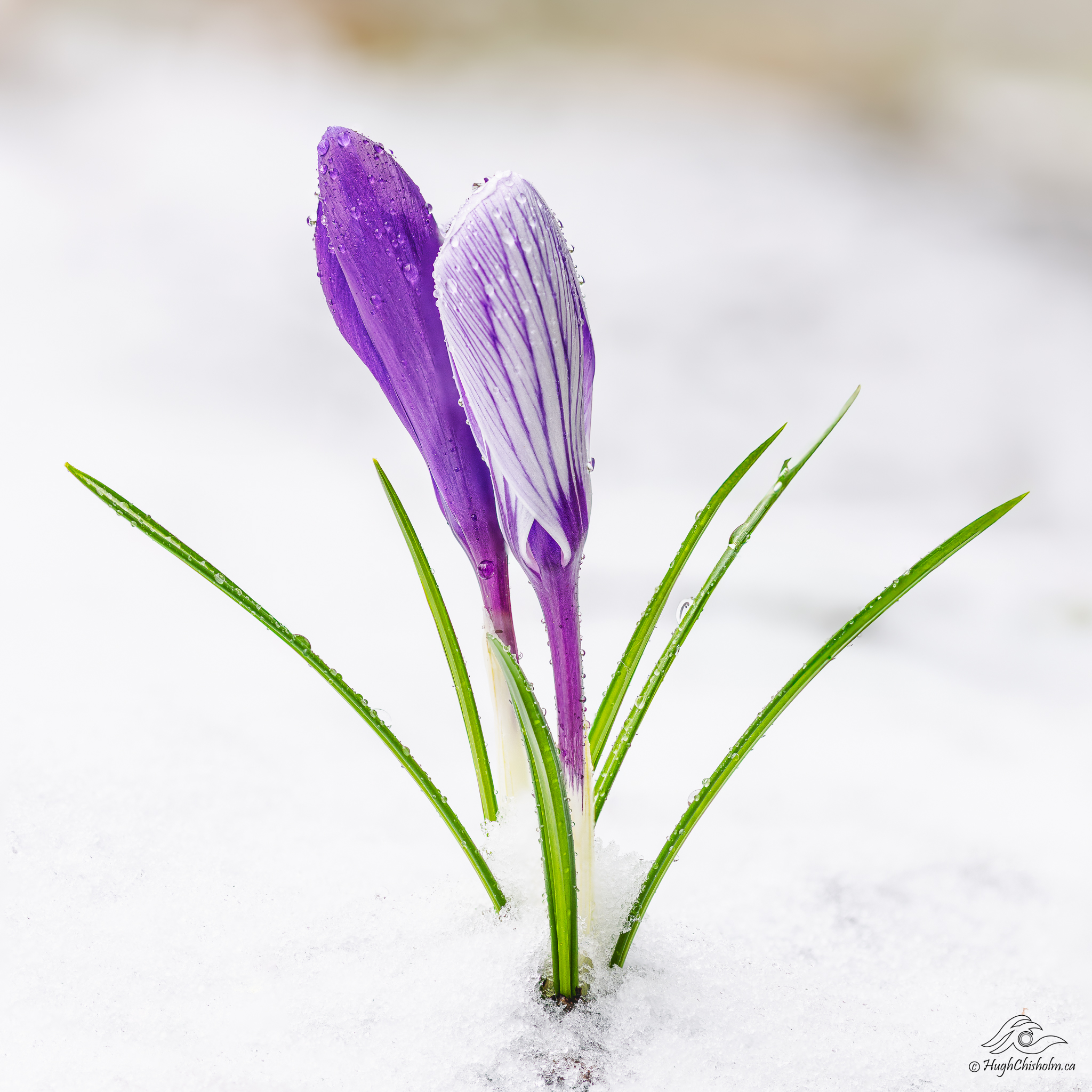 We had a late winter snowstorm after the crocus flowers had popped up so I took advantage of the opportunity to capture a photo of these hardy little plants. I love the contrast between the fresh new vegetation and the cold white snow! It sums up April in Nova Scotia in one image.