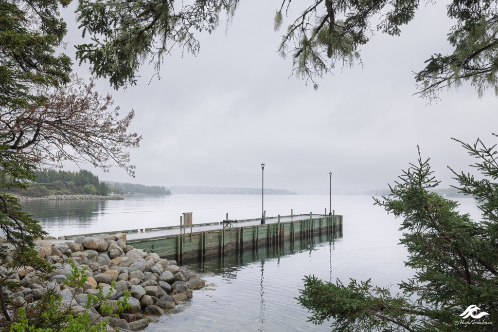 A foggy morning at the Government Wharf in Boutilier’s Point. I used the tree branches to help frame the wharf as the sky was a solid wall of grey fog.