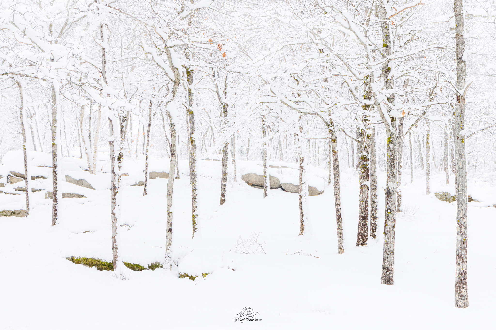 A forest of young oak trees withstand a January snowstorm. Nova Scotia winters can be hard on the plants and animals as we get variable conditions – anything from mild, rainy days to bitterly cold ones to major snowstorms with strong winds.