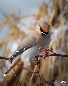 Landscape photography can be challenging as spring arrives so it’s a great time to head to the wetlands and look for birds to photograph. Bohemian waxwings are one of my favourite subjects as they’re quite striking. They love to feed on berries which they gobble down with enthusiasm! Here are two that I shot during a trip to Miners Marsh in Kentville, NS.