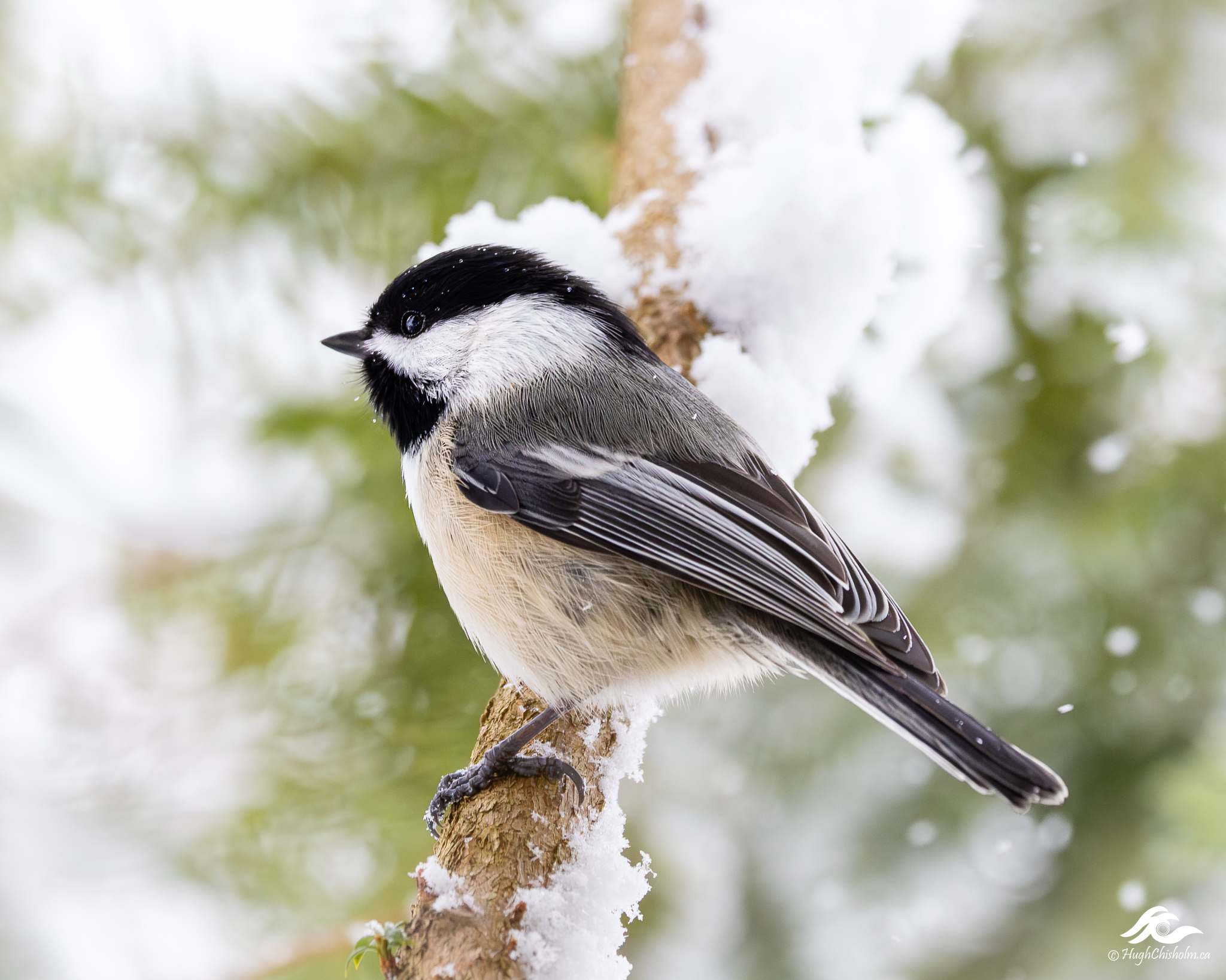 Chickadees are one of my absolute favourite birds! This fellow perched beside my head as I was shooting the goldfinches you see above. I felt like it was giving me pointers.